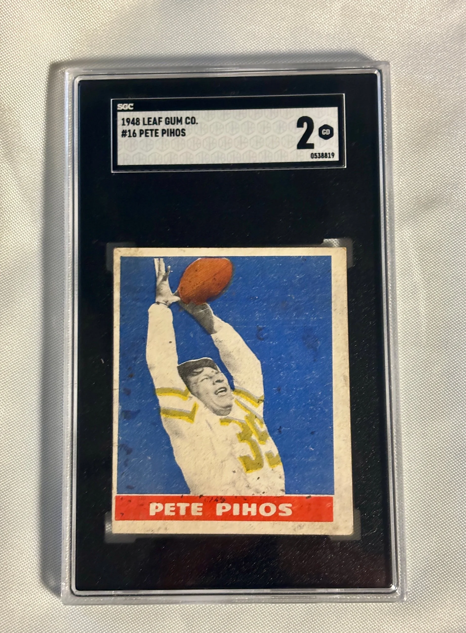 Offered is a 1948 Leaf - Pete Pihos - #16 - SGC 2 Good - Philadelpia Eagles - Hall of Famer.