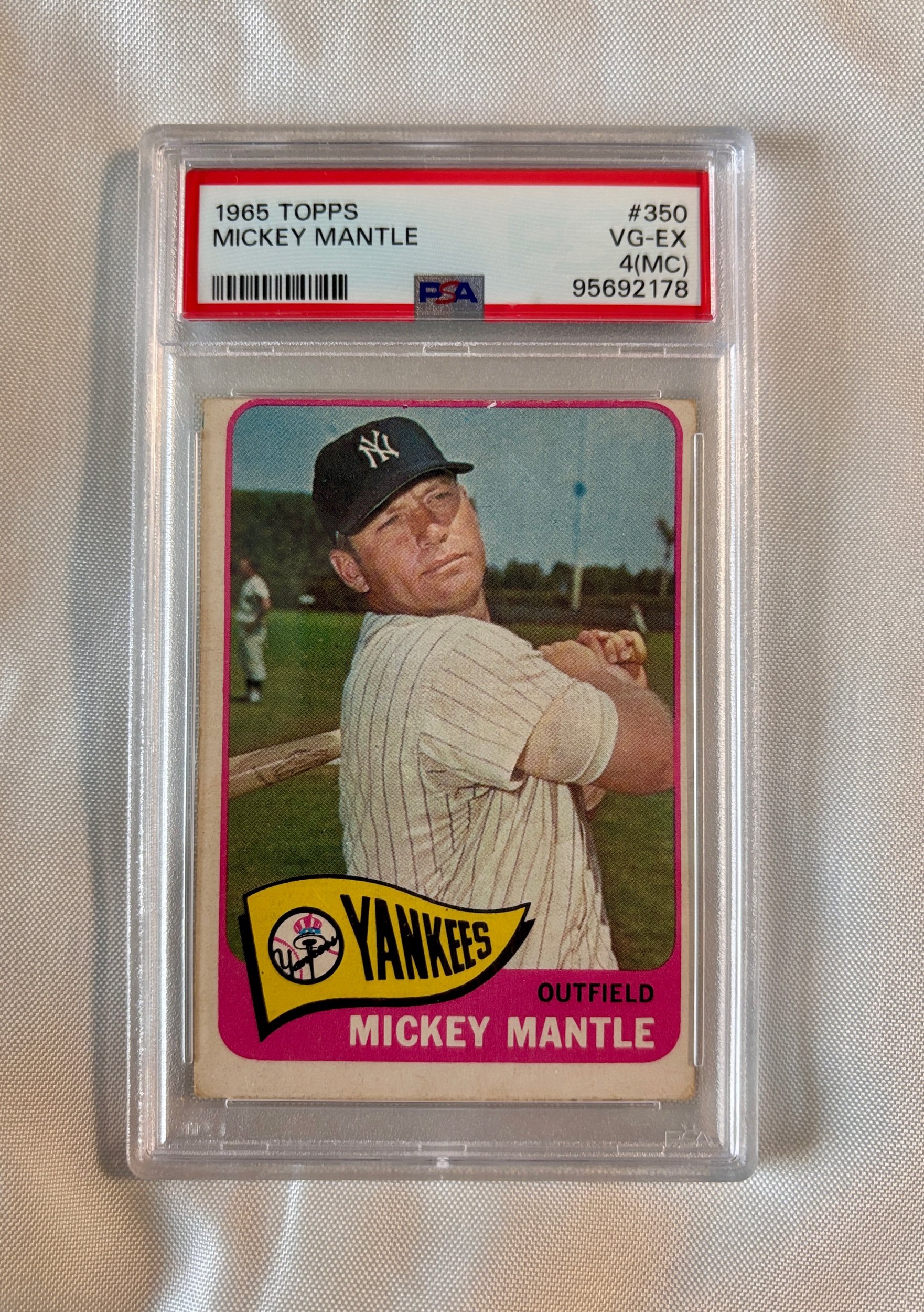 Offered is a 1965 Topps Mickey Mantle - #350 - PSA 4 (MC).