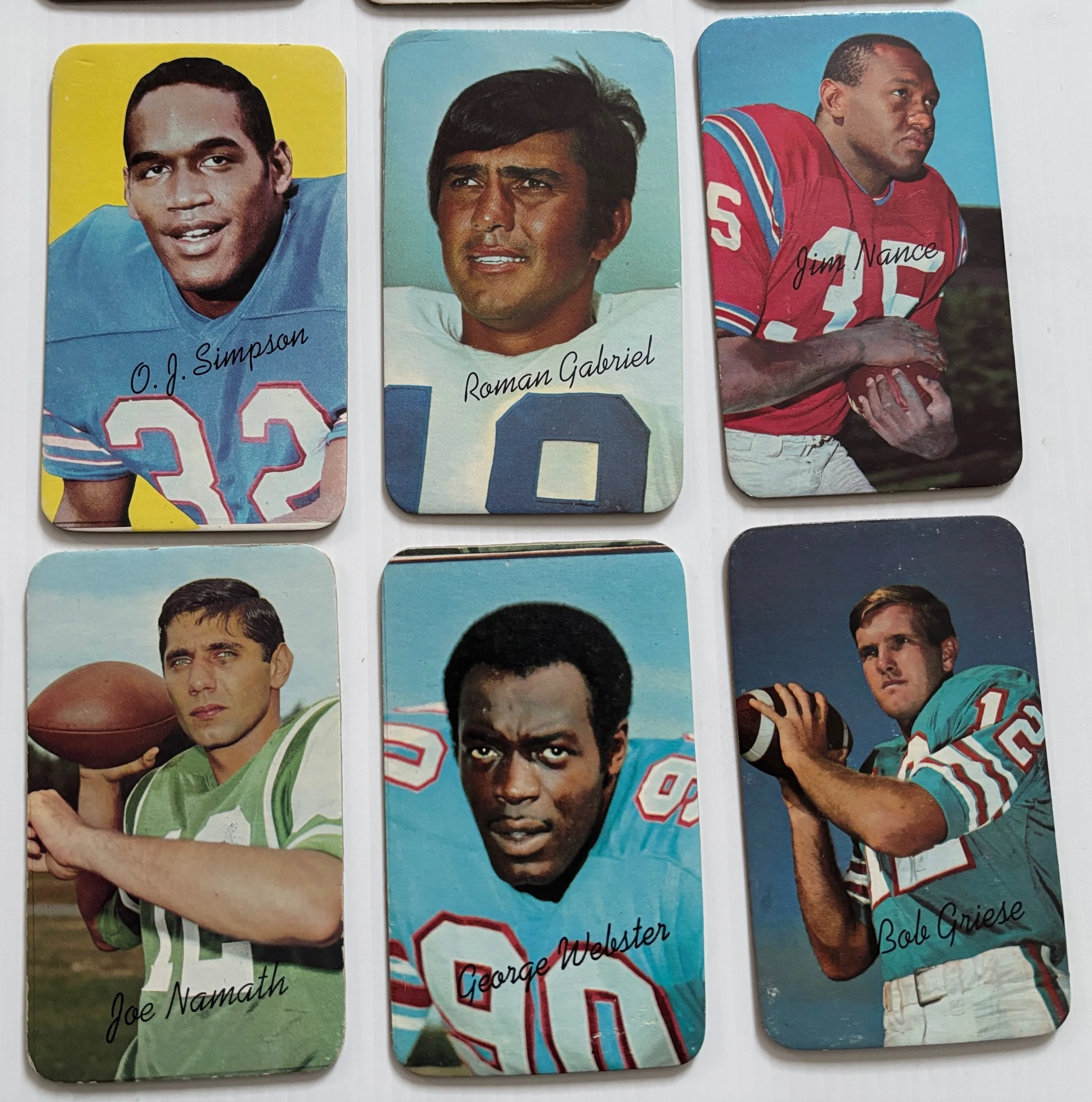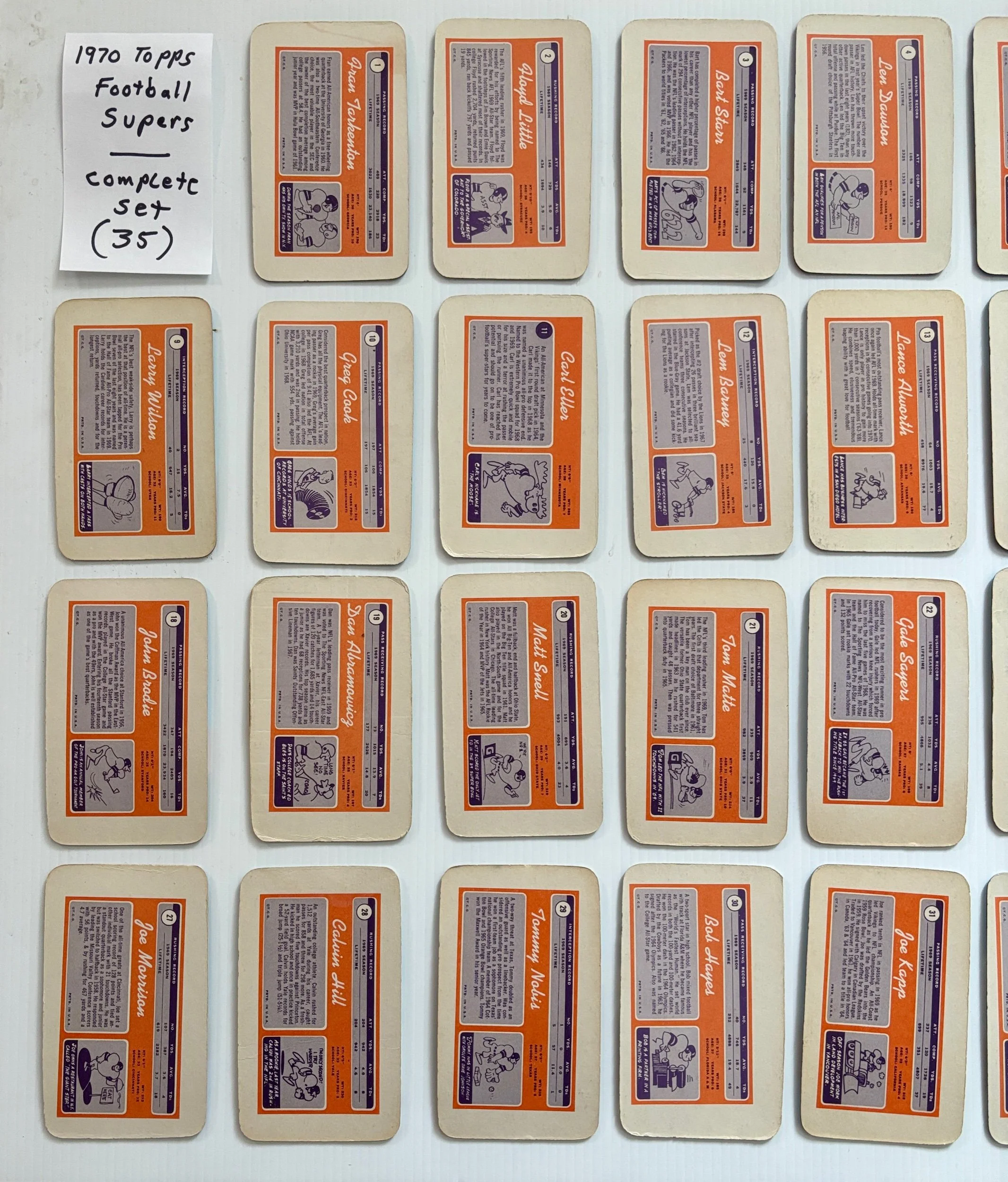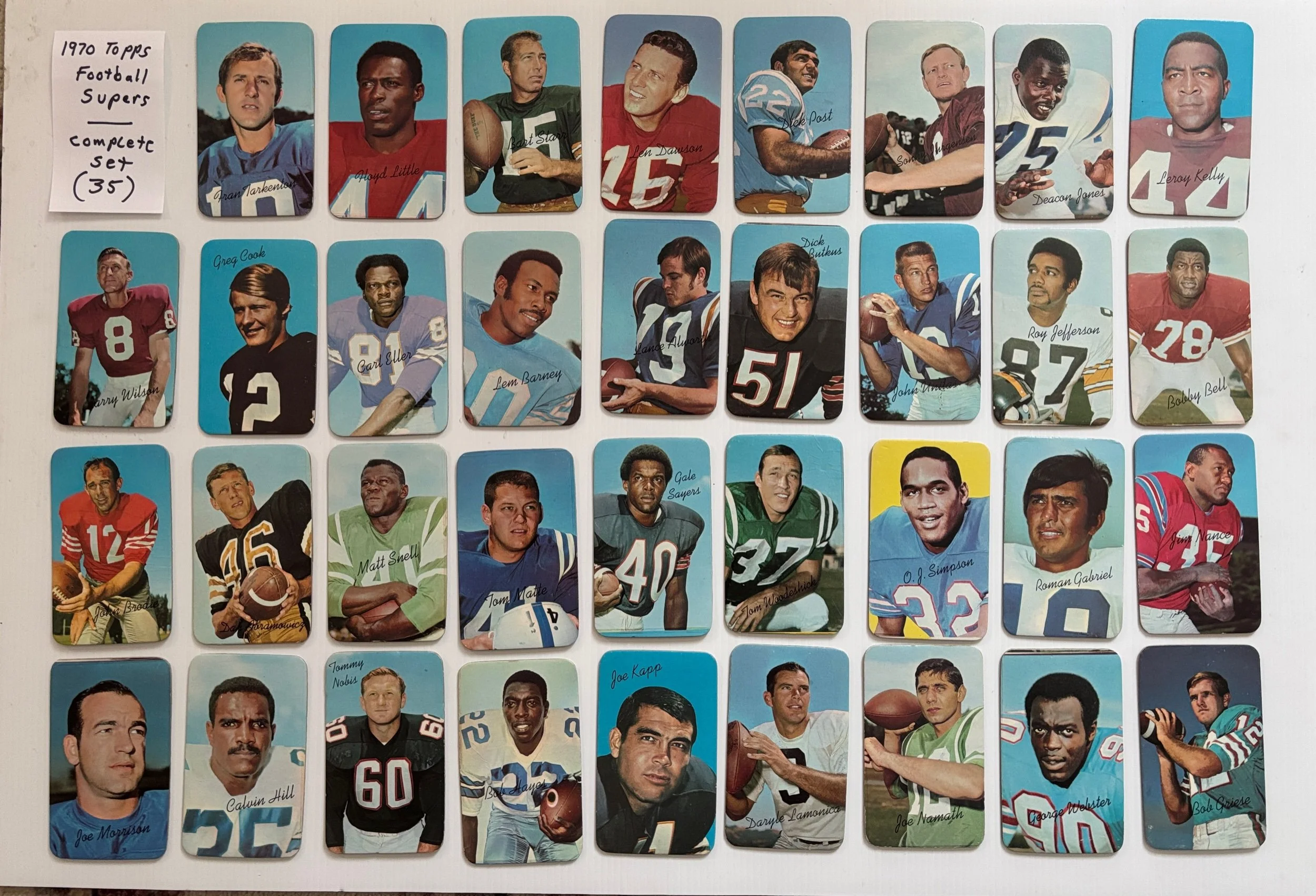 Offered is a Complete Set of 1970 Topps Supers Football Cards. The cards are in good condition with some dings and creases but overall presents beautifully.