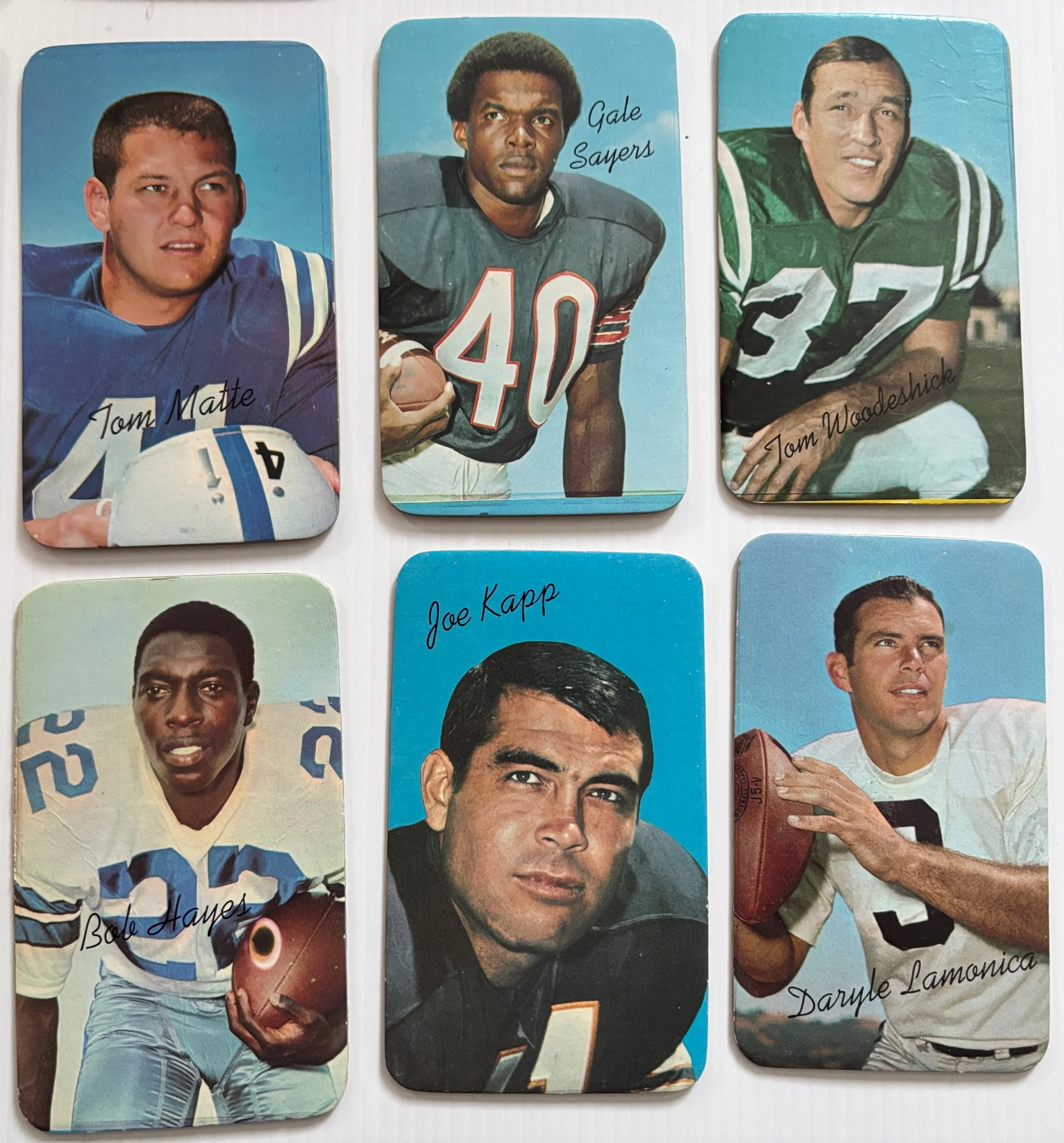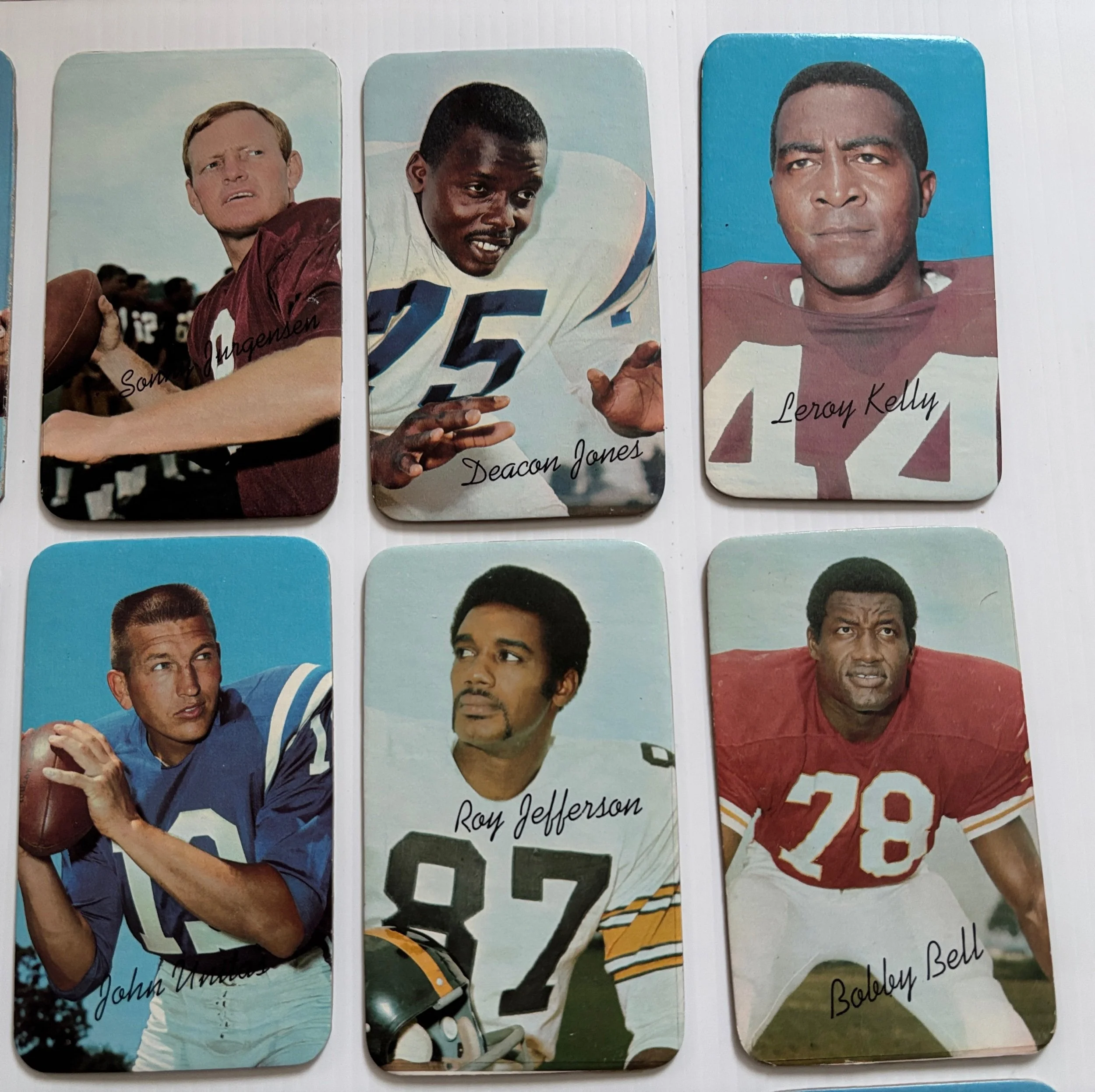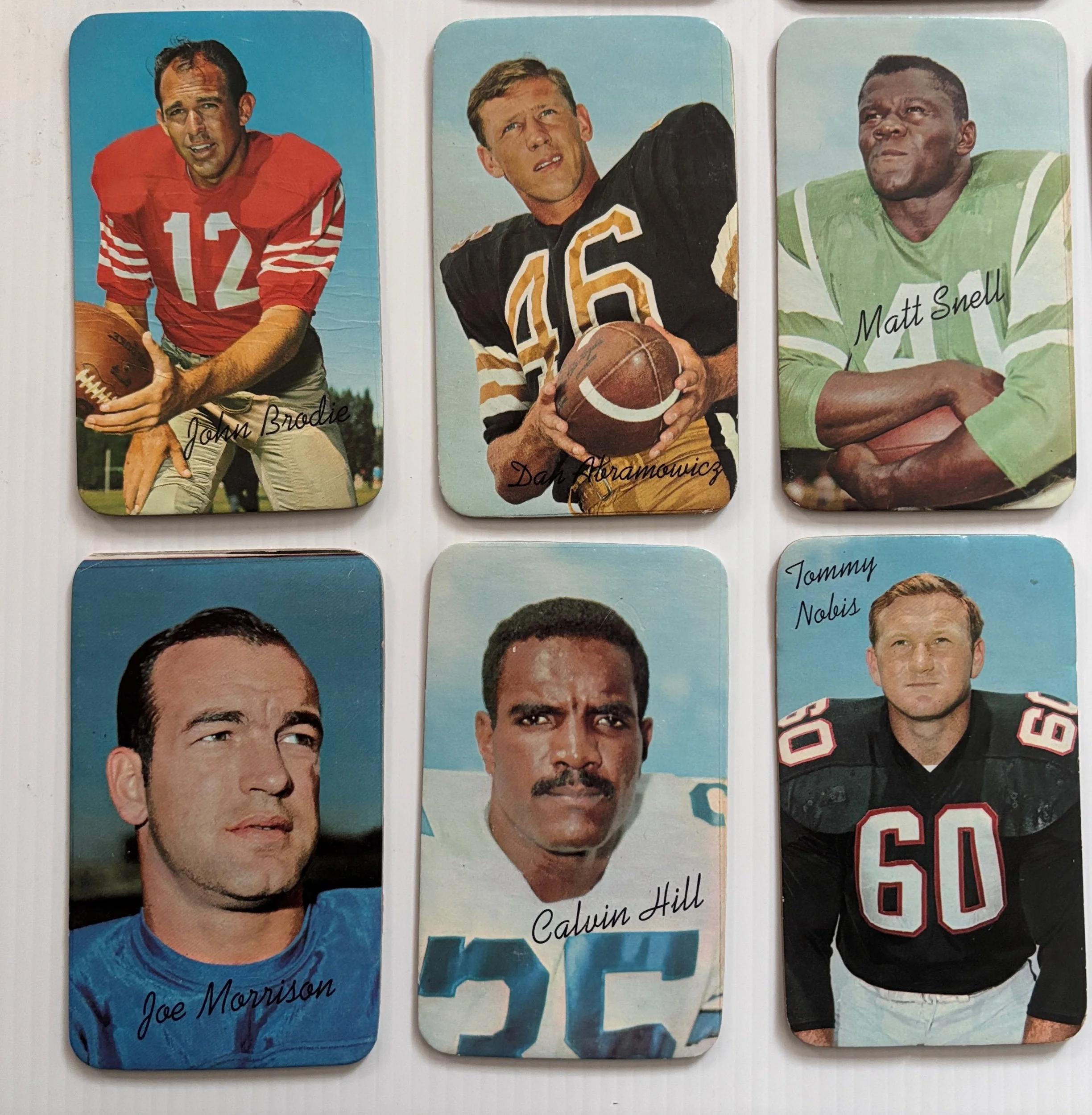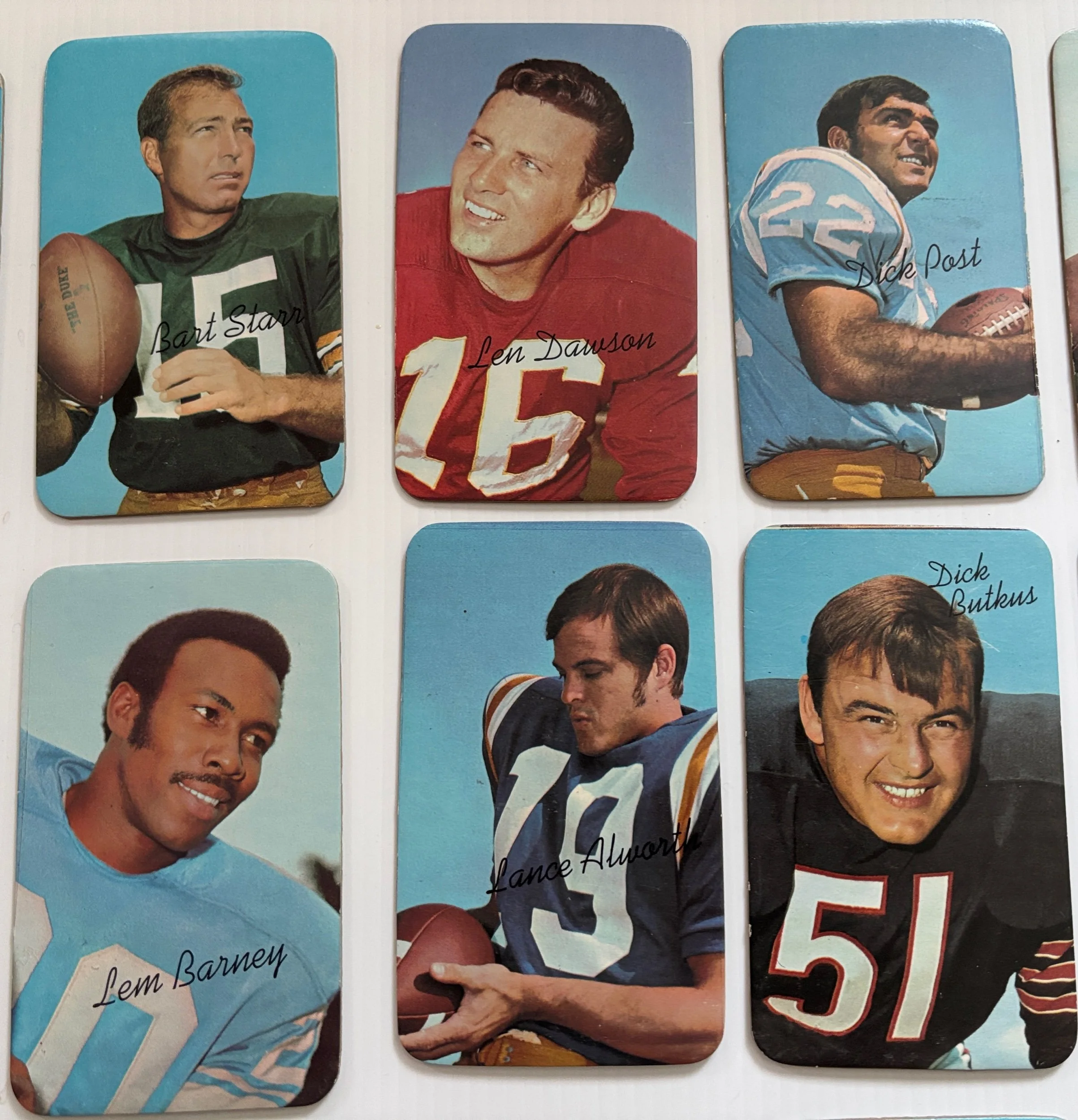 Offered is a Complete Set of 1970 Topps Supers Football Cards. The cards are in good condition with some dings and creases but overall presents beautifully.