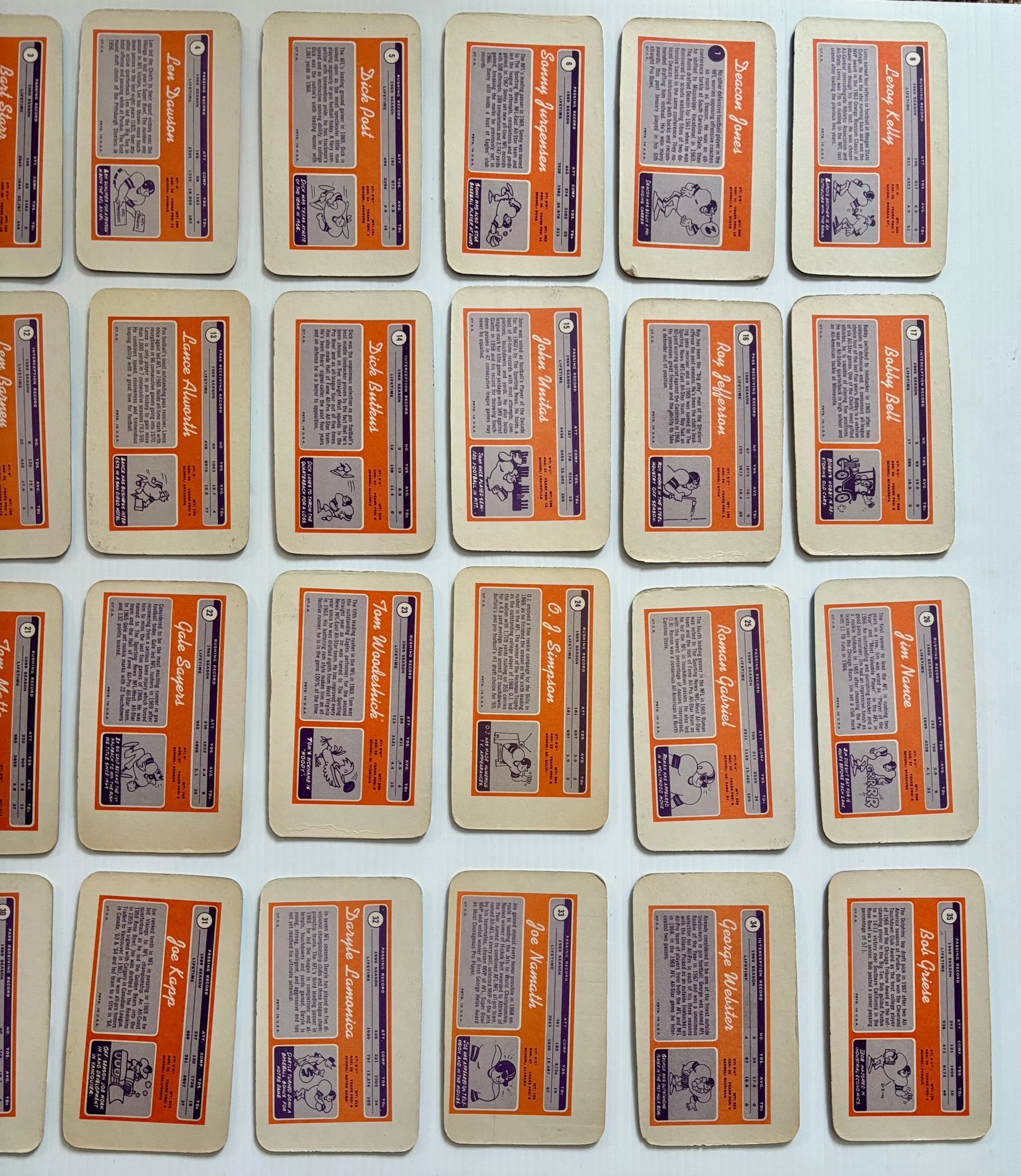 Numbers 29-35 were, famously, short printed. Large numbers of players included in this set are in the Professional Football Hall of Fame.